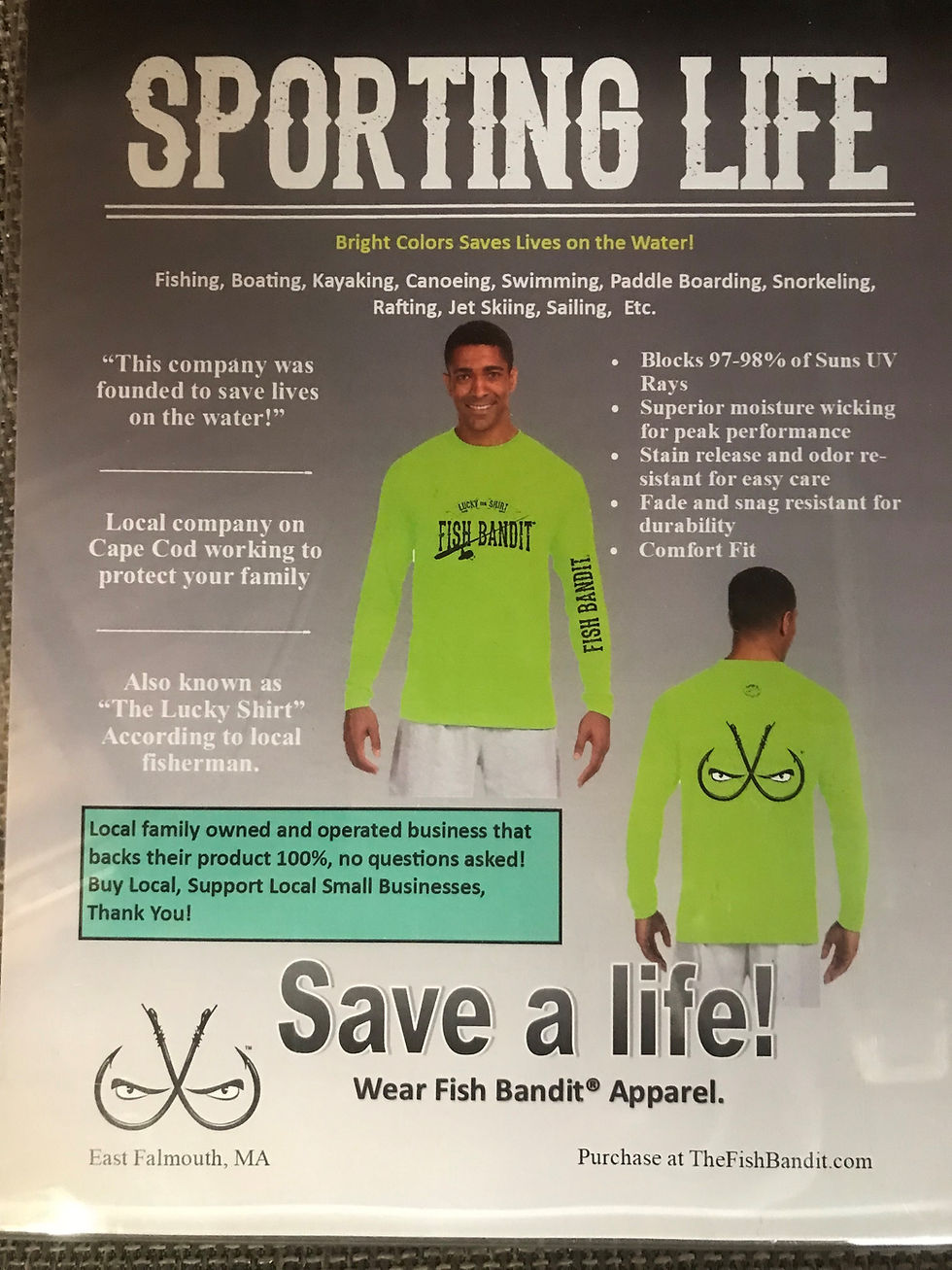 Fish Bandit® Solar Flex Performance Long Sleeve, Blocks 97-98% UV "Lucky Shirt"